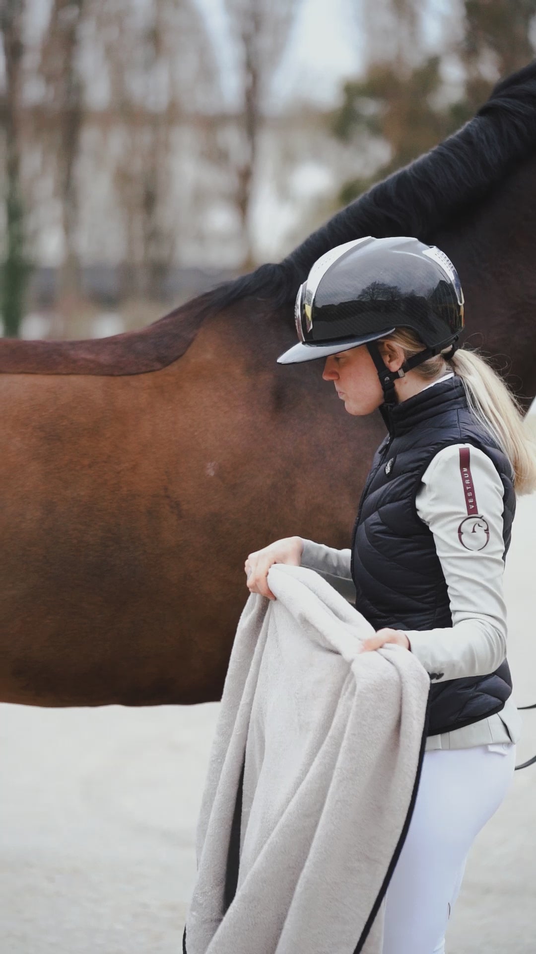The long loop structure of the cotton terry cloth allows for good air circulation , which leads to faster drying of the horse. In hot temperatures, the sweat rug can be soaked in cold water and placed over the horse to cool it down .